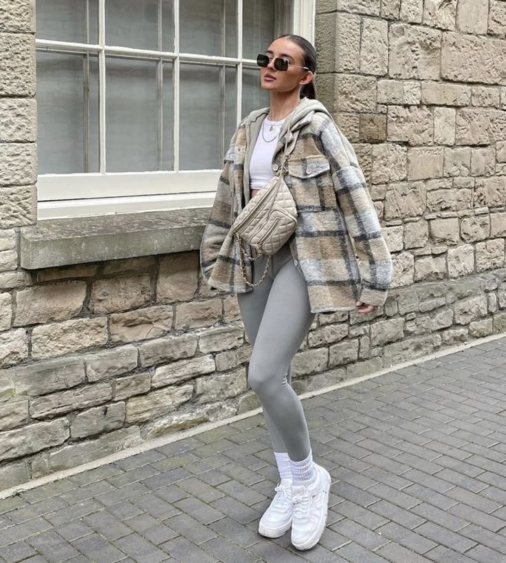An oversized flannel thrown over leggings is the definition of effortless. Add a tank or crop top underneath and finish with sneakers. It’s cozy, quick, and always looks cool.