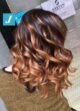 This style blends subtle ginger caramel highlights on dark brown hair, giving you a youthful, warm look that is gorgeous against bronzed skin or freckles.