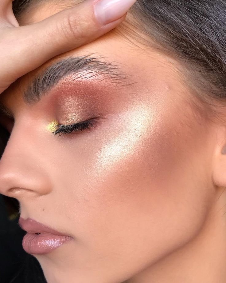 Deep tones glow in bronzes and golds. Danessa Myricks Colorfix Metallics in “Goldmine” or “Chocolate” layered with MAC Ruby Woo lipstick? Chef’s kiss. These new year’s eve makeup looks are bold and regal.