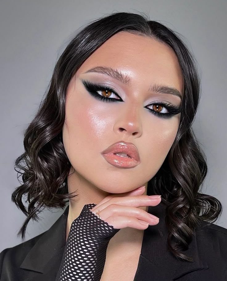 Emerald, sapphire, and amethyst tones shine on medium skin. Try Juvia’s Place The Nubian II Palette and finish with Fenty Gloss Bomb in “Hot Chocolit.” It’s one of those nye makeup looks 2026 that feels luxe without being fussy.