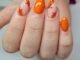 You can create pumpkin designs on one or two accent nails with a pumpkin shade base color on other nails, or you can design pumpkins at the tip, mid, or cuticle line of each nail. Just play around with it.